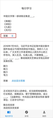 3、点击代表学习培训的回答,可通过点击回答区域的“显示回答”功能来展示回答内容。