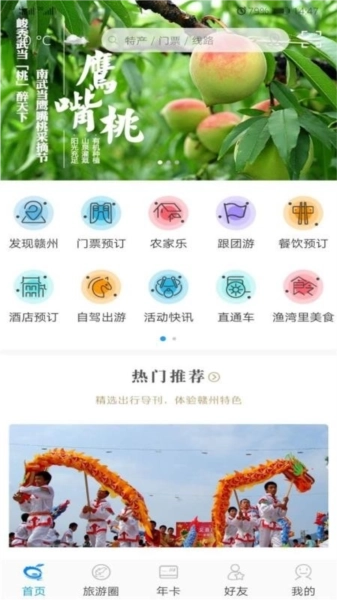 在线展示清晰的本地旅游相关的服务,可以清楚了解旅游门票、团游、农家乐、餐饮、酒店和直通车等丰富的服务,可以直接查看赣州提供的旅游资源合景区,展示本地各个类型景区,支持在线购买景区和门票,智能的预订,在景区使用二维码取票,不用排队就可以购买到当天门票;还可以查看跟团游服务的信息,展示清晰的跟团游详细的服务内容,展示团游服务价格和行程信息,结合自己的需要可以下单一起团游,就可以轻松本地的景区游玩、观赏,为游客提供便捷高效的旅游服务。