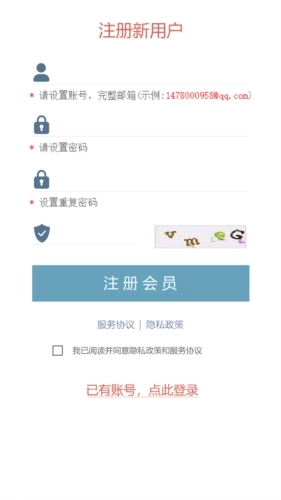 2、在邮箱注册页面中,输入完整邮箱,设置密码,验证码,就注册成功了,点击注册会员按钮就可以直接进入页面了。