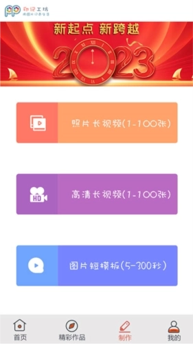 2、该页面中是有三个功能,照片长视频、高清长视频、图片短模板,根据自己的需求选择要制作的规格。