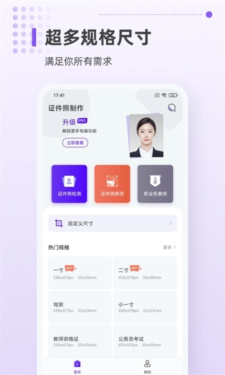 1、提供海量尺寸选项,支持用户自主选择需要的证件照尺寸实时制作。