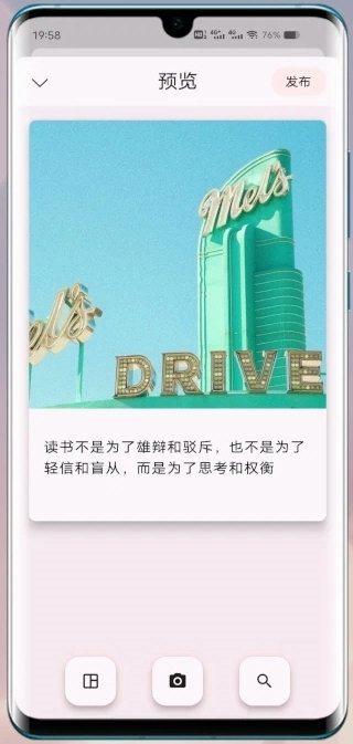 句摘是一款轻量级文案管理与分享应用,致力于为用户提供无干扰的创作环境。不同于综合性社交平台或功能繁杂的笔记软件,聚焦于文字本身,去除冗余功能,强化文案收集、整理、分享与互动的核心体验。无论是摘录书籍中的经典段落、记录日常灵感,还是发布原创作品,用户都能在中找到专属的创作角落。