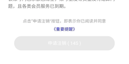 4、在注销页面中点击申请注销按钮就可以注销了。