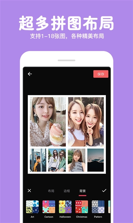 自由拼图:用户可自由拖拽照片位置,叠加多张图片,通过缩放、旋转实现个性化布局,适合创作艺术感强烈的拼贴作品。