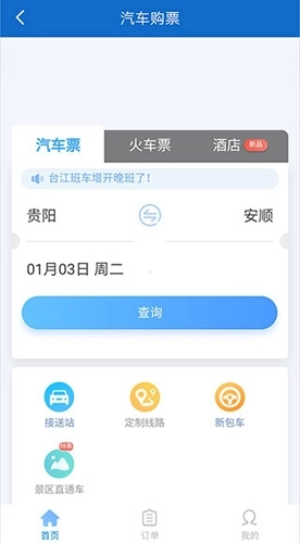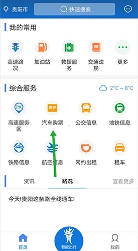 1、首先你们要打开黔通途,进入【首页】后,直接点击【汽车购票】就可以了。