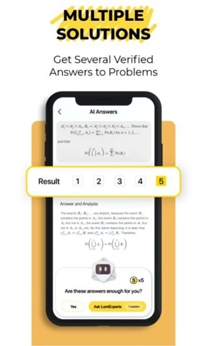 我们为搜题答案增设了双重保障机制,拍照搜题功能将呈现5个结果供参考。