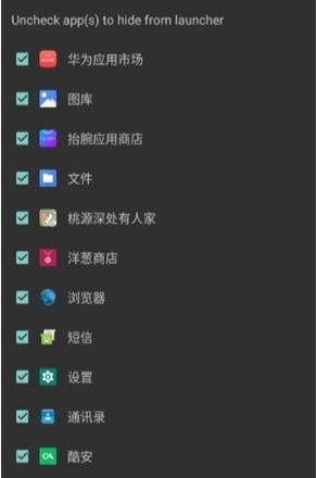 -选项卡显示/隐藏应用程序按钮(位于列表的最底部)来选中/取消选中应用程序