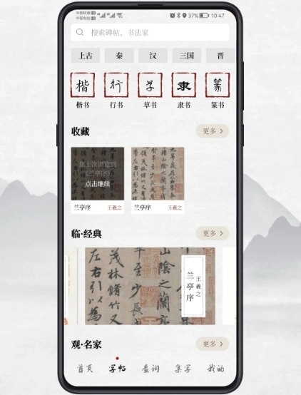 【海量高清字帖】收录了王羲之、欧阳询、颜真卿、赵孟頫等古代著名书法家的真迹作品,以及《兰亭序》《祭侄文稿》《寒食帖》等上万部历史名帖,为用户提供了丰富的参考资料,用户可随时随地欣赏和学习。