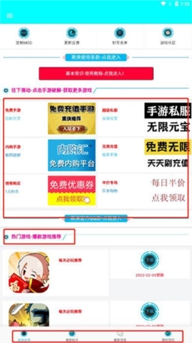 1、安装黑侠APK游戏盒后打开应用,能看到它包含诸多版块;