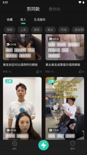 多样化创作:创想猫准备了丰富多样的创作模板,能教你拍摄、剪辑出同款作品。要是你不太会拍摄,就跟着教程一步步来,就能轻松完成拍摄;要是剪辑方面不太熟练,看看同款案例,挑选合适的素材,套用模板就能生成成片,一键操作就能打造出大片效果。