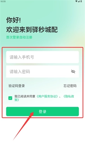 2、在登录页输入手机号与密码,勾选协议后点击登录按钮。