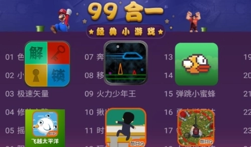 电视游戏99合1安卓版是一款很实用的有着超多小游戏的电视游戏软件,该软件中是有很多游戏可以供用户进行选择的,能够体验超多好玩的小游戏。电视游戏99合1中每个游戏都具有独特的玩法和特色,它了99款不同类型的软件,为用户提供了丰富多样的游戏选择。这款软件的作者将一些小游戏精心整合到其中,使其成为一种全面的娱乐解决方案。