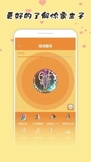3、中文翻译,主人可以将自己说话的声音录制下来翻译为猫语或狗语,相互交流;