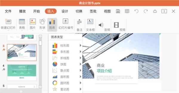 幻灯片制作:支持文字段落设置编辑,插入和编辑文本框、图片、图形等对象的操作,支持幻灯片动画播放等