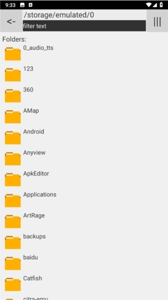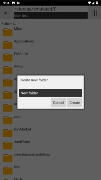然后运行后,界面很简单,点击左上角菜单可以对文件进行排序。Createnewfolder是创建新文件夹。