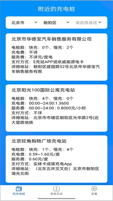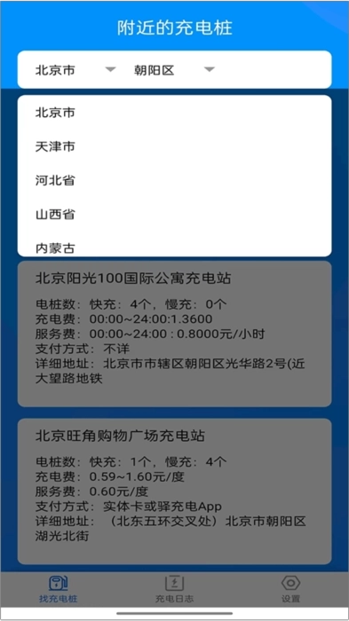 2、用户可以根据城市地区来筛选充电桩,轻松的查找。