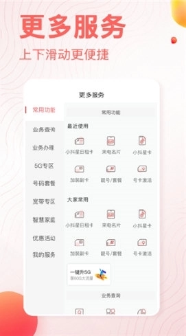 2、快速安全:便捷充流量、交话费、办业务、积分兑换。