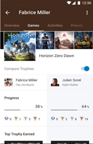 查看其他玩家的简介和奖杯收藏。