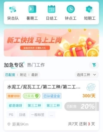 可以依据距离远近、具体工种以及结算方式等不同条件,筛选出符合自身需求的工作资源。