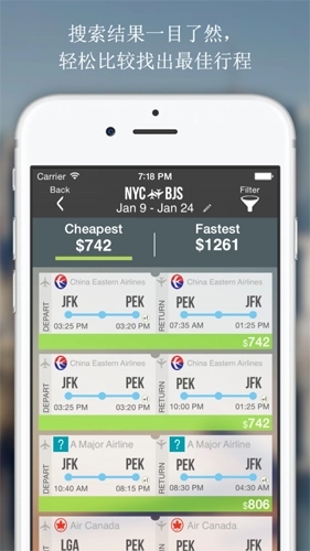 2、灵活的筛选选项。无论是按时间、价格还是航空公司,你都可以方便地筛选出最适合你的航班。