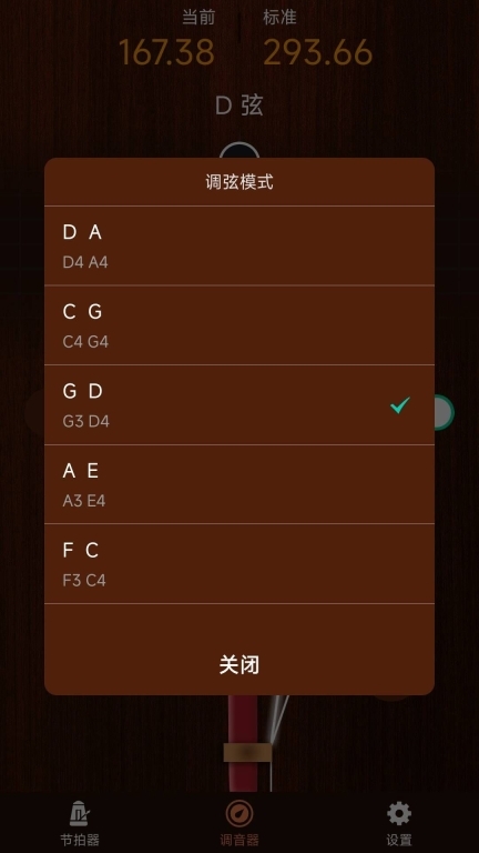 2. 挑选合适的模式(如常规、音乐学院、专业演奏等),也可手动校准二胡的音准。
