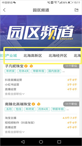 踏入【园区频道】界面,挑选对应的园区,便能便捷地切换并寻觅到心仪的岗位。