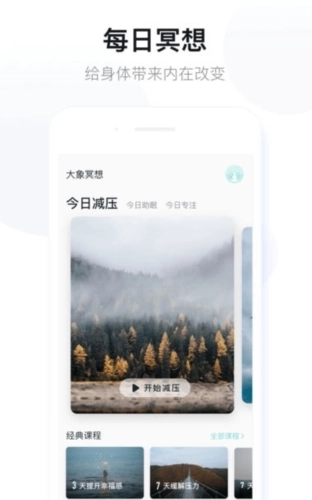 2.音频课程,通过收听不同的音频,通过辅助的背景音乐练习冥想,帮助您缓解压力;