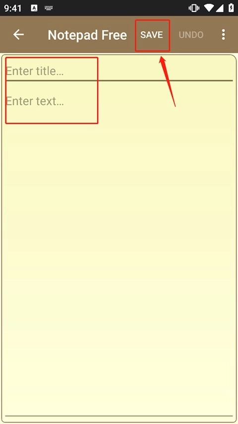 2. 进入后,完成笔记标题内容的输入,然后点击“save”进行保存。