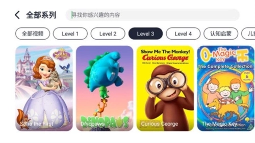 皮小猫从认知层次、语言难度等不同维度,把英语动画与视频划分成4个Level,这样家长就能依据自家宝宝的能力,挑选到合适的学习资源了。