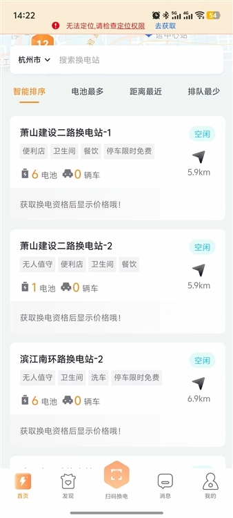 借助定位技术可快速查找周边换电站,实时呈现站点与用户的距离、站内空闲换电设备的数量以及服务时间,助力用户精准规划出行路线,避免不必要的路途往返。