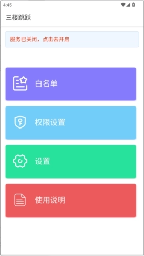 三楼跳跃跳广告是一款十分实用的广告跳过工具,它能自动检测手机内安装的各类应用,当用户使用这些应用时,可借助该工具快速跳过广告,帮助用户获得更流畅的使用体验,有效避免因垃圾广告误触而跳转到其他平台的情况。有需要的用户,不妨来试试三楼跳跃跳广告吧!