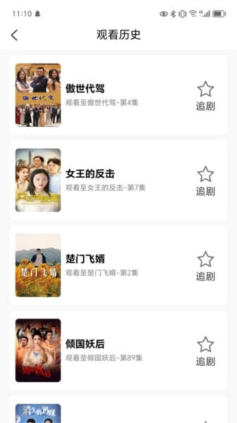 1.用户可点击播放心仪的短剧,在线观看并了解剧情;系统会记录其收看历史,用户可随时查看自己的收看记录。