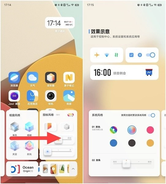 深度系统风格调整:该功能隐藏在变形器中,唤出变形器后向右滑动,便能进入系统风格设置界面。在这里,用户可自由选择系统的颜色搭配,为控制中心、通知栏等系统界面赋予独特色彩;还能对系统界面按钮、卡片等的圆角进行切换,从尖锐直角到柔和圆角,随心而定。
