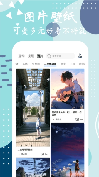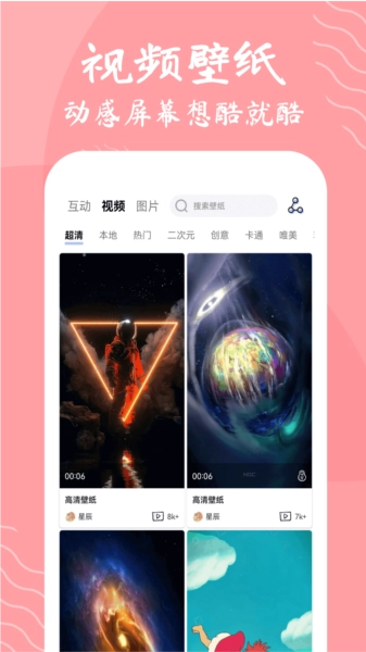 用户既能够滑动屏幕来浏览各类不同风格的壁纸,也可以借助搜索功能去查找特定主题的壁纸。
