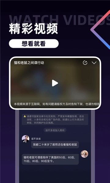 2、异地实时投屏视频,连麦看电影/电视/直播,边看边聊