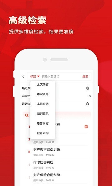 若要搜索案件,可在软件内输入对应的案件关键词,软件会自动帮您搜寻相关案件案例。