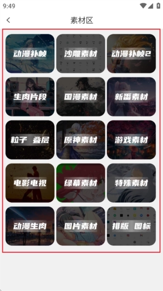 4、素材去则是有关于排版图标,图片素材,绿幕素材,游戏素材等资源和内容。