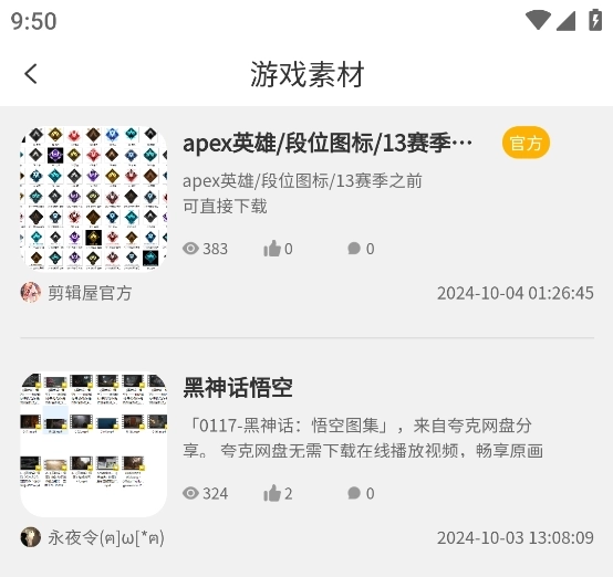 5、例如游戏素材,点击进入。可以看到一些关于游戏的图片资源。