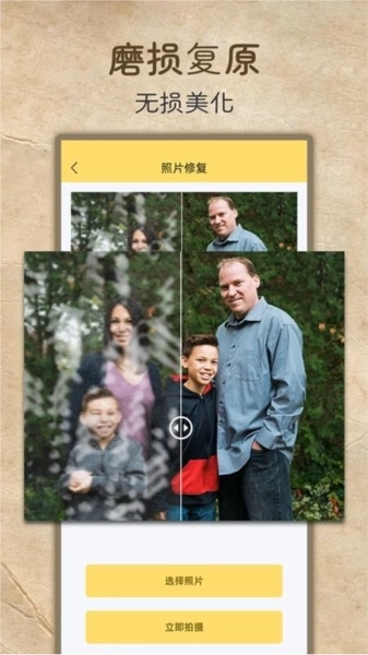 对于有模糊破损褶皱的老照片,能智能修复。