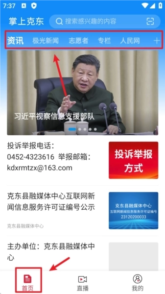 3、首页新闻:热点推荐,本地新闻,学习党政。