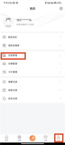 4、在住房管理页面中点击右上方的"+"进行添加;