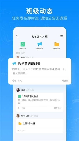 2、班级的公告会清楚的展示在平台里,用户在线就能够更好的进行使用;