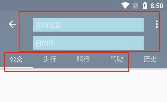 2、接着输入出发地与目的地,系统会自动给出公交、步行、骑行、驾车这四种出行方案供用户挑选;