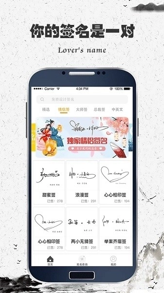 【专属情侣签名】这里有多种为情侣量身打造的签名样式,包括心心相印签、甜蜜浪漫签、两小无猜签、情投意合签、白头偕老签等;为你们定制独有的甜蜜回忆
