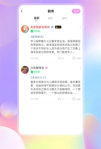 提供众多精品剧情歌,或者剧本,用户可以在软件上找到心仪的小伙伴一起用声音表演;