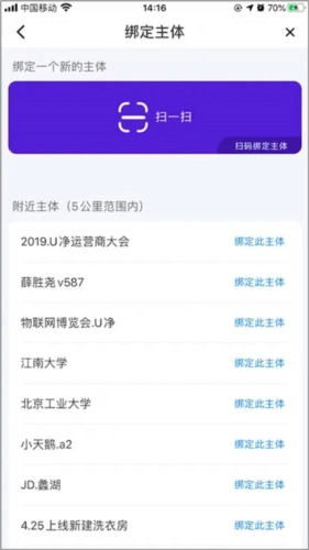 1、首次需通过扫描设备上的用户二维码,或是依据地理位置搜索周边的服务主体完成绑定操作,以此明确服务范围。