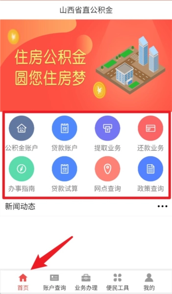 便民服务内容如下:可通过新闻动态板块,了解缴存地公积金中心发布的政策解读、业务指南及中心文件等信息;同时,还能查询服务网点,以及获取房贷相关服务。