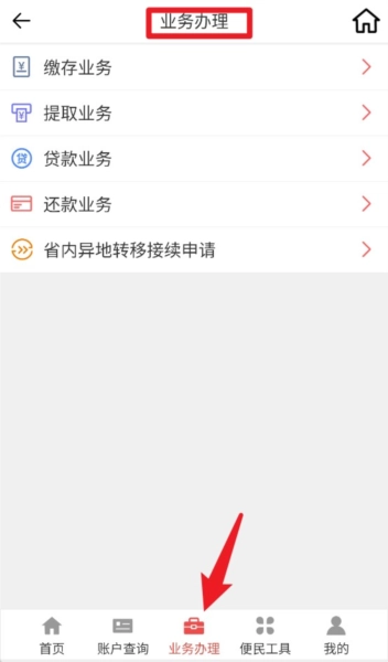 3、“业务办理”栏目可办理缴存、提取、贷款、还款业务,还支持省内异地转移接续申请等操作。