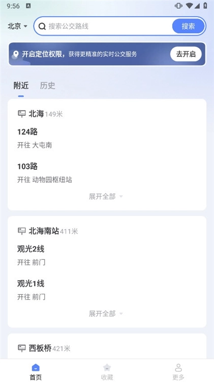 首次打开应用时会请求定位权限,这是必须授予的,否则无法查询周边公交信息;若遇到请求访问通讯录、相册等无关权限的情况,直接拒绝即可!