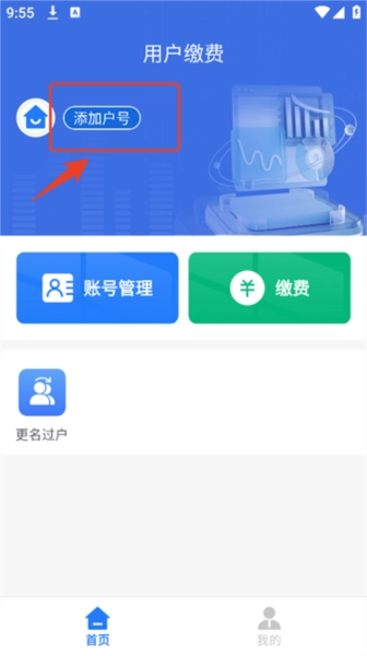 1.完成软件的注册与登录操作后,在【首页】界面点击顶部的“添加户号”按钮。